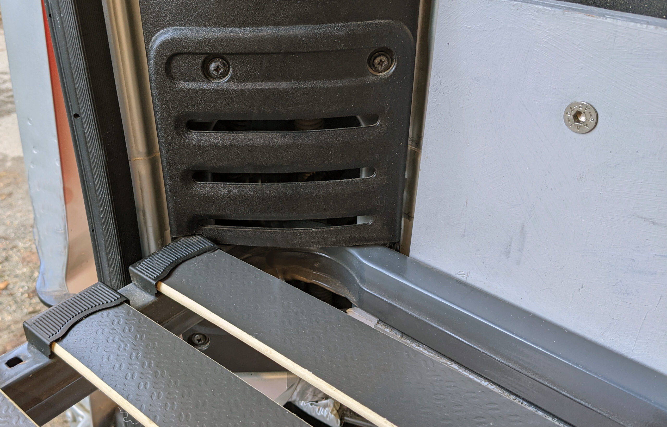>> Découpe de la plaque d’aération de chaque coin, afin de faire passer l’arrondi du sommier.